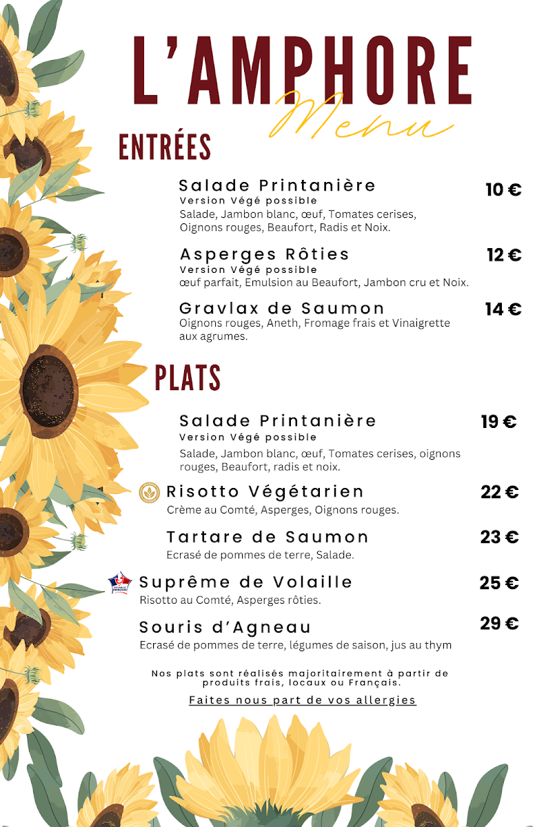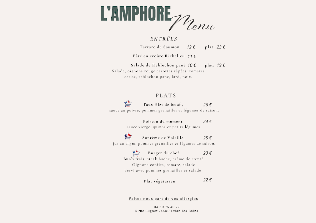 Welcome to L'Amphore, a hidden gem nestled in the heart of Évian-les-Bains. As you step into this charming eatery at 5 Rue Bugnet, you're enveloped in a warm atmosphere, thanks to the dedicated team led by two passionate young owners. L'Amphore offers a menu that celebrates authentic French cuisine with a delightful twist, emphasizing slow food and local ingredients.